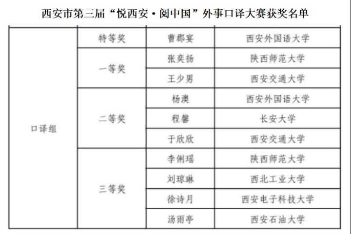 我校學(xué)生在西安市第三屆“悅西安·閱中國(guó)”外事口譯大賽中喜獲佳績(jī)