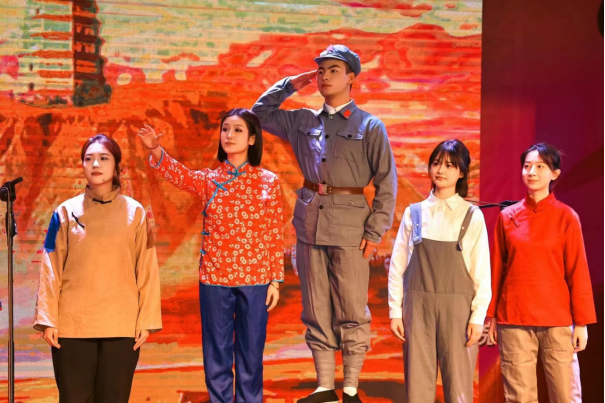 在藝術(shù)展演上篇中,男聲獨(dú)唱《這就是我的祖國(guó)》以聲為賦、以音傳情,帶領(lǐng)觀眾與祖國(guó)同呼吸、與民族共命運(yùn)、與時(shí)代共奮進(jìn);創(chuàng)意表演《葬花吟》藝術(shù)風(fēng)格獨(dú)特,賡續(xù)優(yōu)秀傳統(tǒng)文化;詩(shī)朗誦《以夢(mèng)為馬》帶領(lǐng)觀眾感悟青春奮斗與積極樂(lè)觀;紅色歌劇片段《繡紅旗》《我的愛(ài)人你可聽(tīng)見(jiàn)》《天邊有顆閃亮的星》展現(xiàn)了革命者們對(duì)信仰和理想的堅(jiān)定信念和不屈精神;大學(xué)生藝術(shù)團(tuán)帶來(lái)的現(xiàn)代舞《一葷一素》在豐富多變的節(jié)奏和絢麗多姿的舞蹈中將藝術(shù)展演的上半場(chǎng)推向高潮。