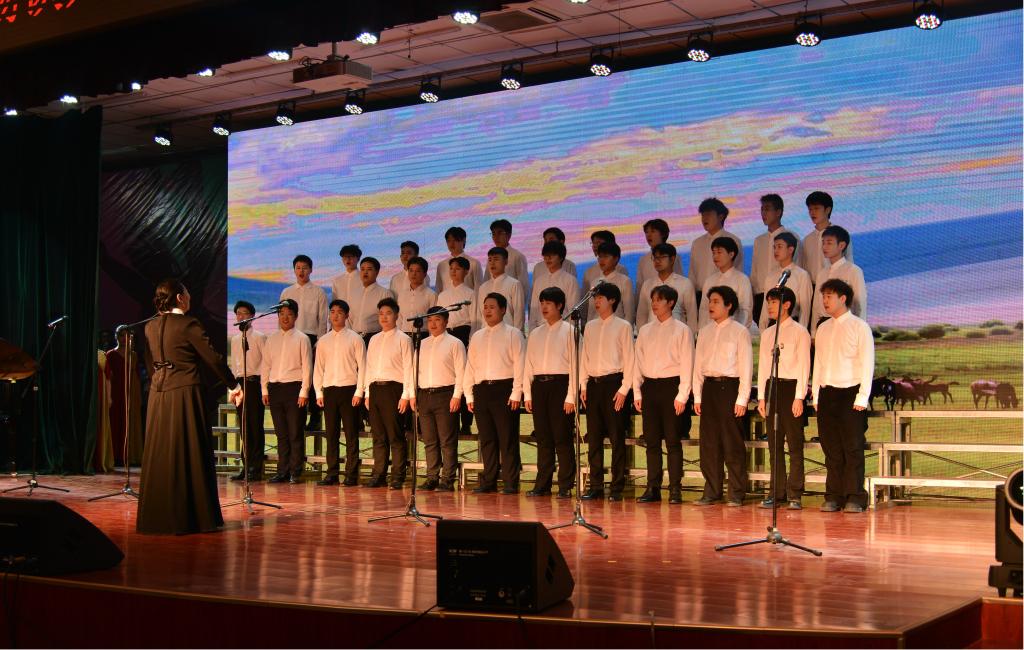 大合唱《歡樂(lè)的那達(dá)慕》《在燦爛陽(yáng)光下》描繪了歡樂(lè)的草原節(jié)日?qǐng)鼍?,歌頌中?guó)共產(chǎn)黨的偉大歷程和光輝業(yè)績(jī);藝術(shù)展演在全體演職人員一同合唱《領(lǐng)航》中迎來(lái)尾聲,完美落幕。