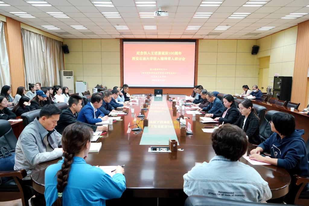 10月10日下午,學(xué)校紀(jì)念鐵人王進(jìn)喜誕辰100周年鐵人精神育人研討會(huì)在雁塔校區(qū)西階會(huì)議中心第一會(huì)議室舉行。校黨委副書記張木、副校長(zhǎng)張君濤出席研討會(huì),全國(guó)、全省高校黃大年式教師團(tuán)隊(duì)代表,省級(jí)教學(xué)名師代表,省級(jí)、校級(jí)思政“大練兵”教學(xué)標(biāo)兵代表以及黨委教師工作部、教務(wù)處、研究生院、馬克思主義學(xué)院負(fù)責(zé)人和師生代表50余人參加會(huì)議。本次研討會(huì)由陜西省哲學(xué)社會(huì)科學(xué)重點(diǎn)研究基地——校鐵人精神研究中心和馬克思主義學(xué)院主辦,會(huì)議由馬克思主義學(xué)院院長(zhǎng)張海濤主持。