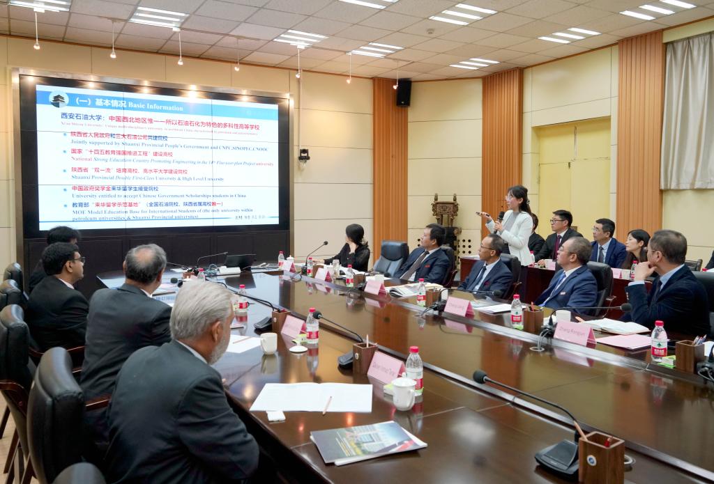 布哈里在致辭中對(duì)學(xué)校的誠(chéng)摯邀請(qǐng)和熱情接待表示衷心感謝。他簡(jiǎn)要介紹了巴基斯坦國(guó)立科技大學(xué)的發(fā)展戰(zhàn)略、專業(yè)布局和科研合作等情況。他表示,西安石油大學(xué)辦學(xué)特色鮮明,國(guó)際化成效顯著。希望兩校加強(qiáng)溝通,推動(dòng)教師互訪、學(xué)生互派,實(shí)現(xiàn)共贏發(fā)展。