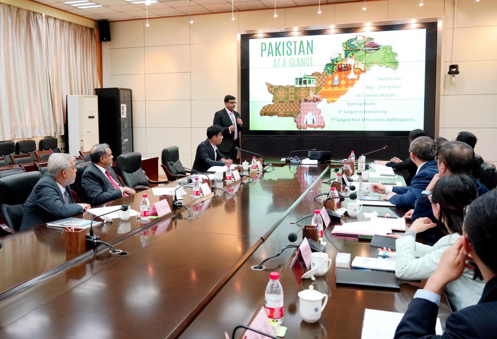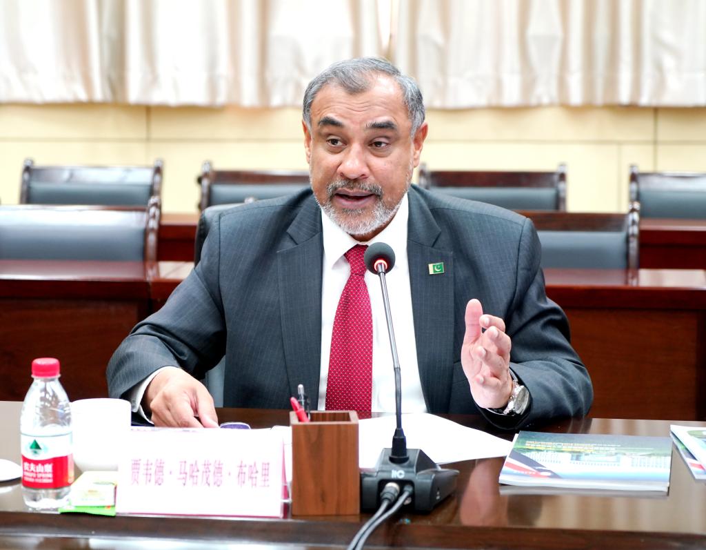 座談會(huì)上,我校國(guó)際教育學(xué)院負(fù)責(zé)人對(duì)學(xué)校發(fā)展歷史、學(xué)科專業(yè)、人才培養(yǎng)、對(duì)外交流、成果轉(zhuǎn)化、校地合作等方面情況作了全面介紹。巴基斯坦國(guó)立科技大學(xué)教務(wù)處負(fù)責(zé)人對(duì)該校全球排名、專業(yè)特色、科技園區(qū)建設(shè)等情況作了介紹。