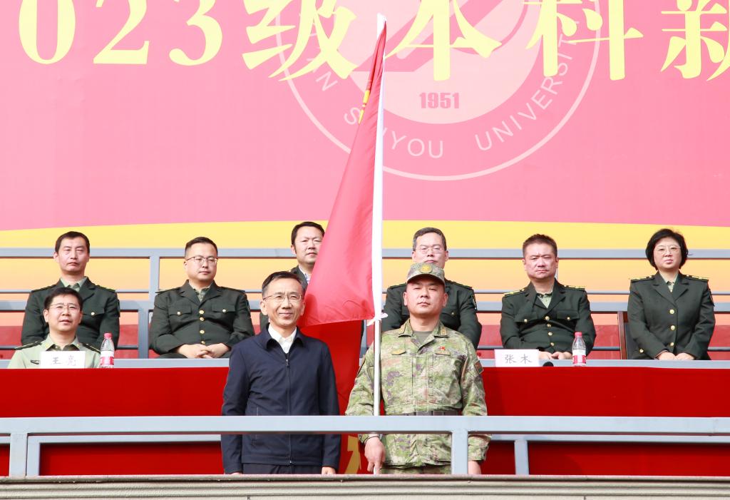 10月10日上午,我校2023級(jí)本科新生軍訓(xùn)動(dòng)員大會(huì)在鄠邑校區(qū)東田徑場(chǎng)舉行。軍訓(xùn)領(lǐng)導(dǎo)小組組長(zhǎng)、校黨委副書(shū)記張木,中國(guó)人民解放軍某部張海偉中校出席大會(huì)。鄠邑校區(qū)管理辦公室、學(xué)生工作部、武裝部、校團(tuán)委、教務(wù)處、后勤處、校醫(yī)院等相關(guān)部門(mén)負(fù)責(zé)人,全體參訓(xùn)學(xué)生工作干部以及2023級(jí)全體本科新生參加大會(huì)。