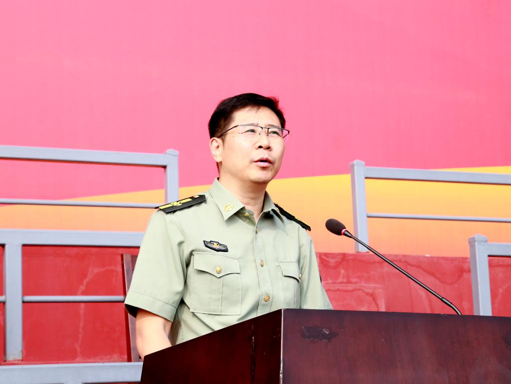 軍訓(xùn)領(lǐng)導(dǎo)小組副組長(zhǎng)、軍訓(xùn)旅政委、學(xué)生工作部部長(zhǎng)王亮作軍訓(xùn)動(dòng)員。他對(duì)承訓(xùn)部隊(duì)表示感謝,對(duì)參訓(xùn)學(xué)生提出三點(diǎn)要求:一要堅(jiān)定理想信念,對(duì)偉大事業(yè)懷有崇高的使命感;二要矢志不渝地追求“鐵人”般的意志;三要養(yǎng)成良好的紀(jì)律意識(shí)和習(xí)慣。