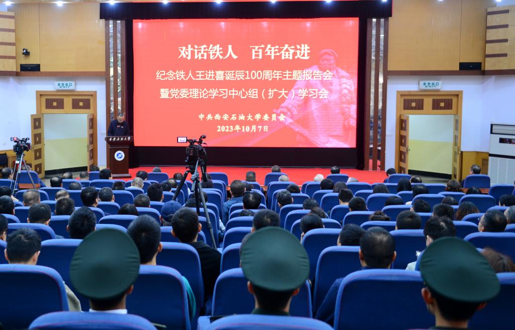 2023年10月8日是鐵人王進喜同志誕辰100周年紀念日,在全黨開展學習貫徹習近平新時代中國特色社會主義思想主題教育之際,在鐵人誕辰100周年這個重要節(jié)點,10月7日上午,學校紀念鐵人王進喜誕辰100周年主題報告會暨黨委理論學習中心組(擴大)學習會在雁塔校區(qū)會議中心學術(shù)報告廳舉行,以此紀念鐵人王進喜同志,激勵全體師生員工進一步弘揚鐵人精神,傳承紅色基因,凝聚奮進力量。校黨政領(lǐng)導班子成員參加活動。會議由校黨委副書記、紀委書記、監(jiān)察專員李延平主持。