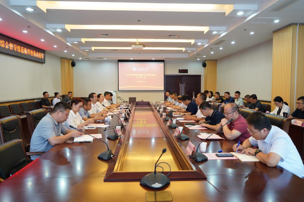 為全面貫徹落實(shí)習(xí)近平總書記關(guān)于教育的重要指示精神和2023年全省教育工作會(huì)議精神,深化學(xué)習(xí)貫徹習(xí)近平新時(shí)代中國特色社會(huì)主義思想主題教育成果,切實(shí)抓好黨中央、國務(wù)院和省委、省政府相關(guān)教育政策及決策部署落地,高位推進(jìn)委廳年度重點(diǎn)工作,9月1日上午,陜西省教育工作綜合督導(dǎo)高校第二組組長(zhǎng)、省教育廳二級(jí)巡視員孫全學(xué)一行7人來學(xué)校開展2023年教育工作綜合督導(dǎo)。副校長(zhǎng)蘇文甫、程永清出席匯報(bào)會(huì)并陪同督導(dǎo)檢查。
