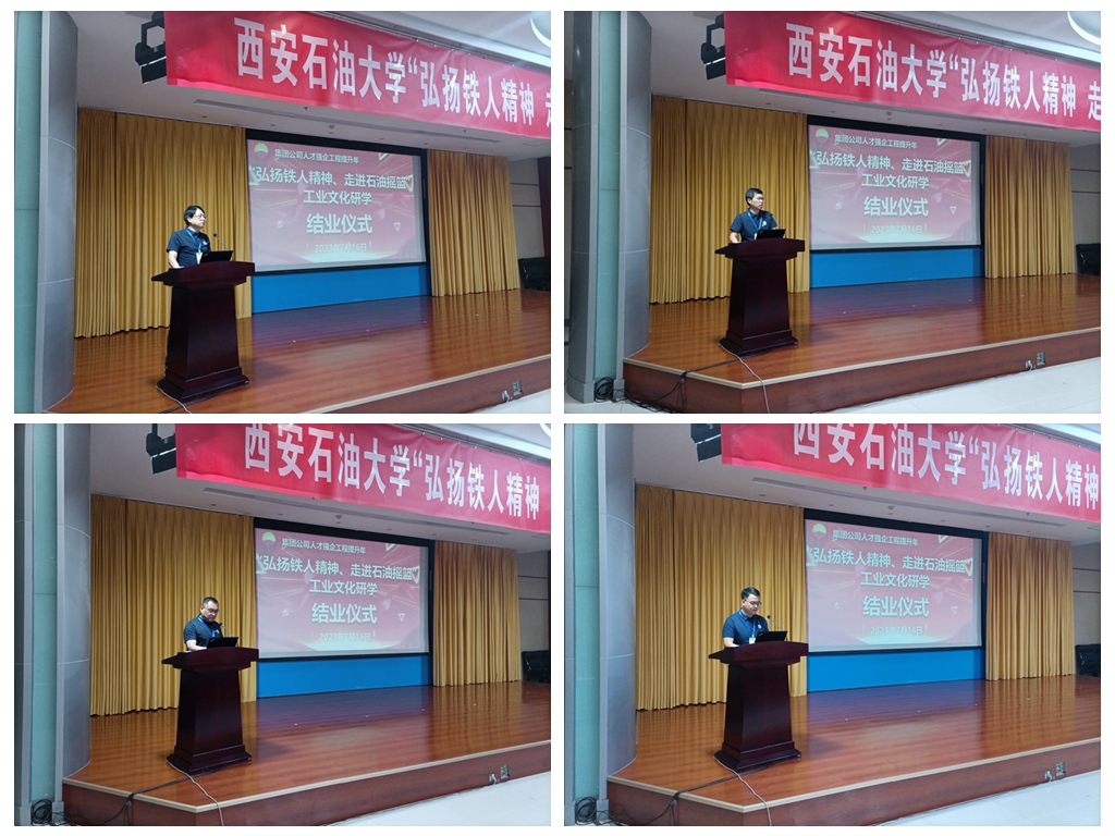 7月12日上午,在研學(xué)班開班儀式上,我校副校長程永清代表學(xué)校對(duì)玉門油田的精心組織和細(xì)心安排表示衷心感謝,他介紹了我校的發(fā)展歷程以及與玉門油田的歷史淵源。同時(shí),就本次培訓(xùn)班全體學(xué)員提出三點(diǎn)要求,一是要加強(qiáng)思想建設(shè)、在提振精神上求突破;二是要提高自身素質(zhì)、在提升能力上求突破;三是要注重學(xué)用結(jié)合、在推動(dòng)發(fā)展上求突破。他希望培訓(xùn)學(xué)員繼承和發(fā)揚(yáng)好石油精神、玉門精神和鐵人精神,不斷錘煉過硬的工作作風(fēng),為把學(xué)校建設(shè)成特色鮮明的高水平教學(xué)研究型大學(xué)作出自己應(yīng)有的貢獻(xiàn)。