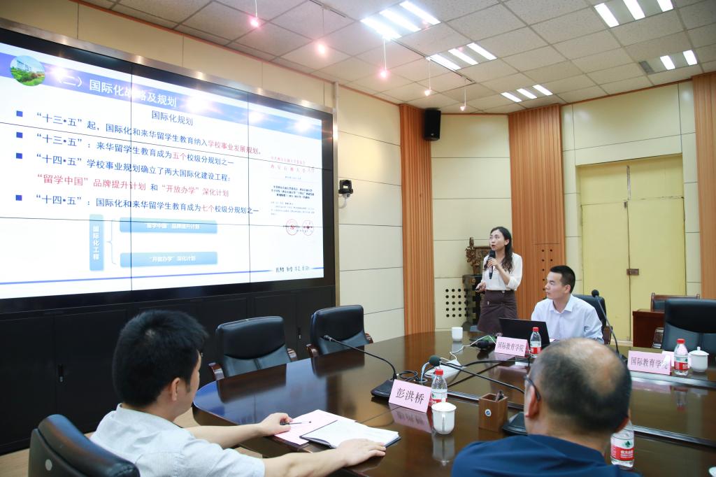國(guó)際教育學(xué)院副院長(zhǎng)秦璟詳細(xì)介紹了學(xué)校國(guó)際化與來華留學(xué)工作的相關(guān)情況及近幾年取得的成績(jī),其中我校開展的中塔、中吉校企合作培養(yǎng)項(xiàng)目和牽頭推動(dòng)的土庫曼斯坦“魯班工坊”建設(shè)項(xiàng)目,得到了僑聯(lián)一行的高度關(guān)注和贊賞。