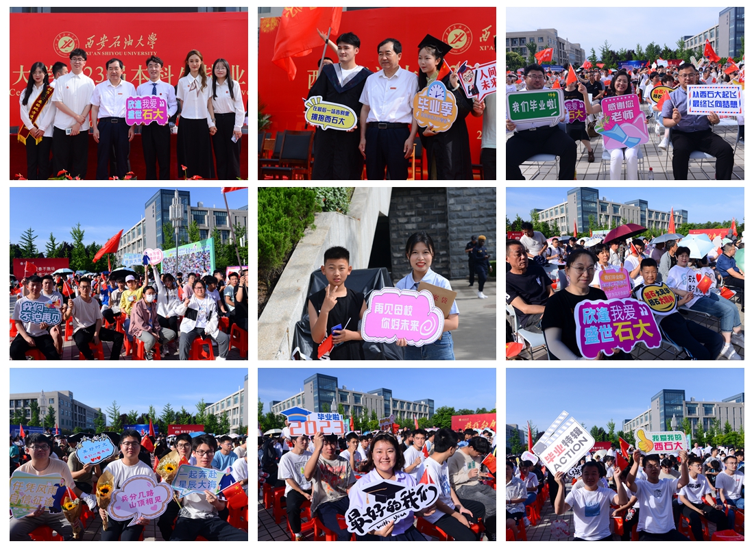 校黨委副書記、紀(jì)委書記、監(jiān)察專員李延平宣讀了《西安石油大學(xué)關(guān)于表彰2023屆優(yōu)秀畢業(yè)生的決定》,副校長陳軍斌宣讀了《西安石油大學(xué)關(guān)于2023屆本科學(xué)生準(zhǔn)予畢業(yè)、頒發(fā)畢業(yè)證和授予學(xué)士學(xué)位的決定》,副校長程永清宣讀了《西安石油大學(xué)校友總會關(guān)于聘任2023屆年級校友理事的決定》。與會校領(lǐng)導(dǎo)為志愿服務(wù)西部計劃、榮獲優(yōu)秀畢業(yè)生榮譽稱號的學(xué)生代表頒發(fā)了榮譽證書并贈送了“原油”印章紀(jì)念品,為年級理事代表頒發(fā)了聘任證書和紀(jì)念品。