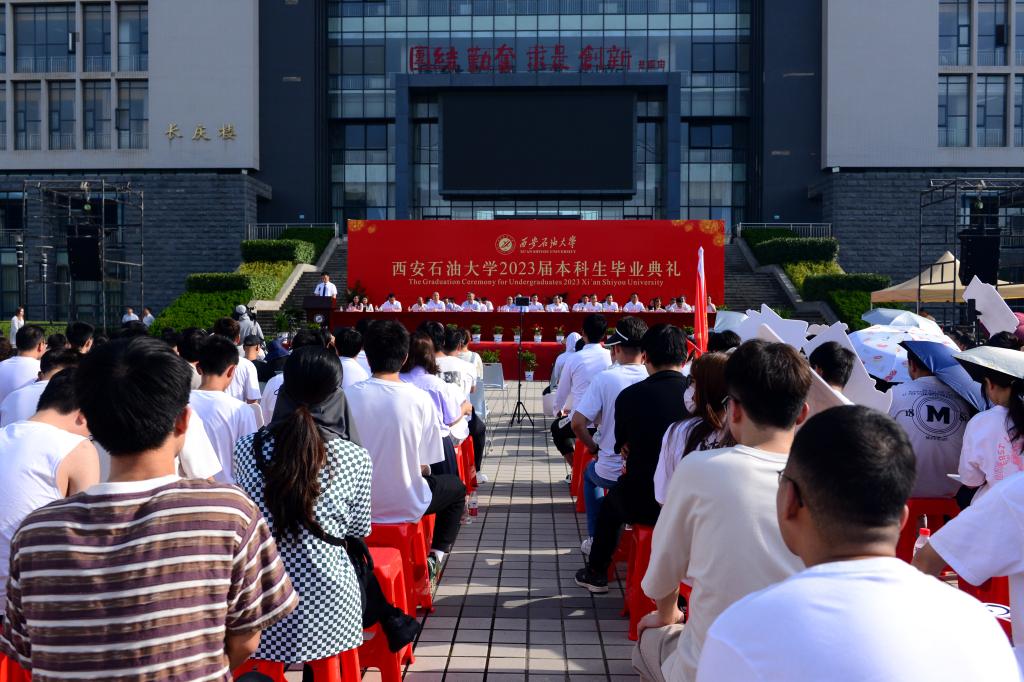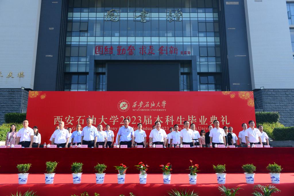李天太為2023屆本科畢業(yè)生致辭。他代表學(xué)校向順利完成學(xué)業(yè)的4143名中外本科畢業(yè)生表示最誠摯的祝賀和最美好的祝福,向所有幫助大家的老師們、親友們以及社會各界朋友們表示最衷心的感謝和最誠摯的敬意。李天太回顧了2023屆畢業(yè)生四年的精彩時光,肯定了畢業(yè)生取得的出色成績,并向大家提出了三點希望:一是希望同學(xué)們厚植家國情懷,堅定理想信念;二是希望同學(xué)們錘煉品德修為,做到行穩(wěn)致遠(yuǎn);三是希望同學(xué)們永葆進取之心,練就過硬本領(lǐng)。最后李天太寄語廣大畢業(yè)生,用西石大精神照亮人生前行的方向,樹立遠(yuǎn)大志向,保持奮進姿態(tài),錘煉堅韌意志,勇做開路先鋒和事業(yè)闖將,以不負(fù)過往、不畏將來之決心,用奮斗開創(chuàng)精彩人生,成就事業(yè)華章。