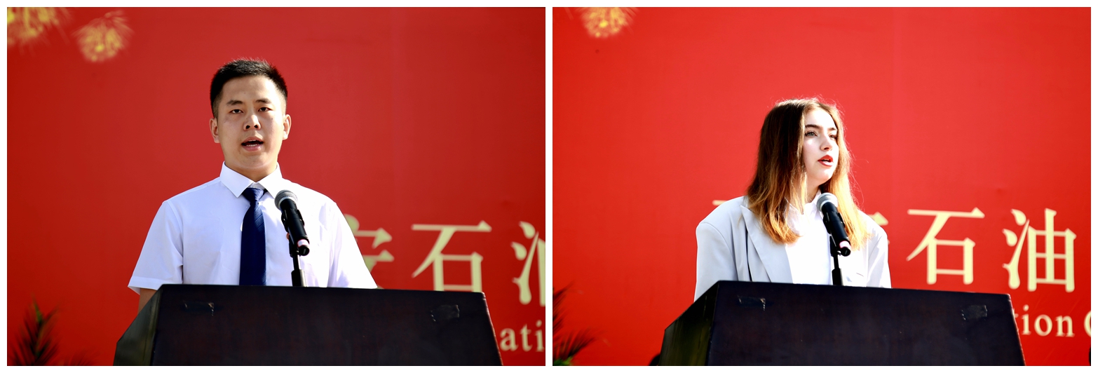 石油工程學(xué)院石工(卓越)1901班王志超同學(xué)、來自俄羅斯的經(jīng)濟管理學(xué)院電子商務(wù)1901班芮娜同學(xué)分別代表畢業(yè)生和留學(xué)生發(fā)言。