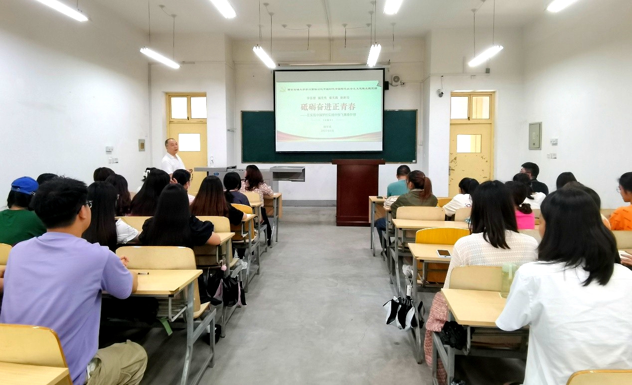 6月12日下午,副校長(zhǎng)陳軍斌在鄠邑校區(qū)博覽樓A123教室講授題為《砥礪奮進(jìn)正青春—在實(shí)現(xiàn)中國(guó)夢(mèng)的實(shí)踐中放飛青春夢(mèng)想》的學(xué)習(xí)貫徹習(xí)近平新時(shí)代中國(guó)特色社會(huì)主義思想主題教育專題黨課。外國(guó)語學(xué)院相關(guān)負(fù)責(zé)人、輔導(dǎo)員、學(xué)生代表參加學(xué)習(xí)。此次專題黨課由外國(guó)語學(xué)院黨委書記田虹霞主持。