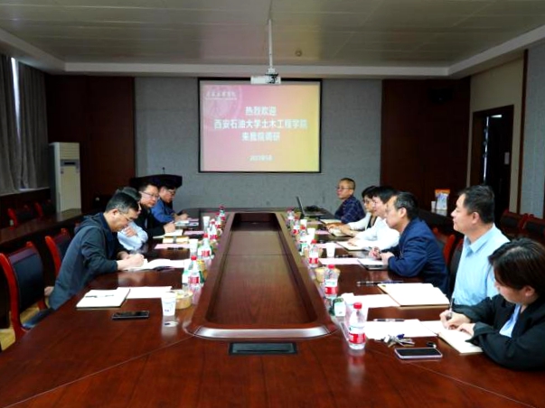 為高標準高質(zhì)量開展學習貫徹習近平新時代中國特色社會主義思想主題教育,深入落實習近平總書記來陜考察重要講話重要指示,扎實開展調(diào)查研究,5月24日至25日,副校長楊戰(zhàn)社率隊赴西安理工大學、西安工業(yè)大學走訪調(diào)研,分別與西安理工大學土木建筑工程學院黨委書記趙欽,西安工業(yè)大學建筑工程學院黨委書記劉慧萍、院長黃華等領(lǐng)導(dǎo)進行交流座談。