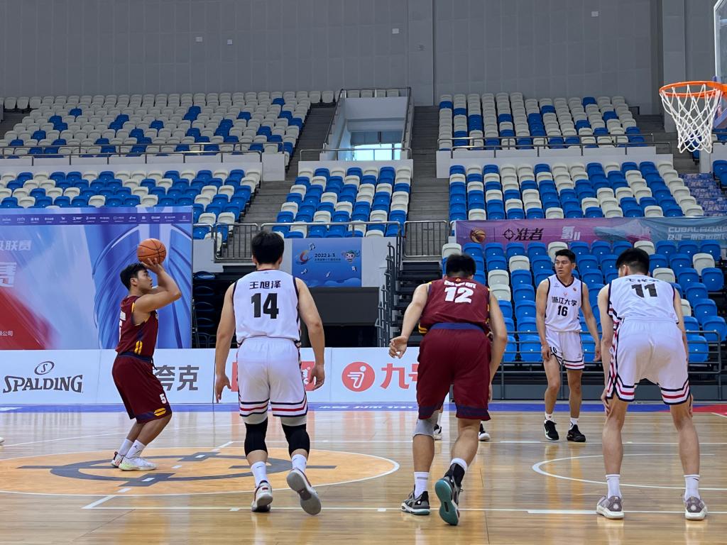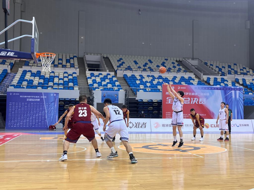 在全國賽小組賽中,首場面對南區(qū)球隊安徽理工大學。首次面對南方球隊小、快、靈的打法,我方隊員強硬防守、耐心進攻,由于地理位置原因,首發(fā)隊員們很快出現(xiàn)了體力不支等情況,主教練迅速調(diào)整陣容,給予休息,隊員們咬牙堅持拼搏,始終保持著領(lǐng)先的優(yōu)勢,最終以98:78的比分戰(zhàn)勝安徽理工大學,首戰(zhàn)告捷。5月20日我校迎來第二場小組賽,對陣曾兩次獲得全國總冠軍的中國刑事警察學院。開局面對對方全場緊逼,五上五下的戰(zhàn)術(shù),我校隊員咬緊牙關(guān)、穩(wěn)扎穩(wěn)打,上半場結(jié)束時雙方比分膠著,下半場我校隊員手感火熱,率先進入節(jié)奏,打出一波小高潮,最終以71:48大比分戰(zhàn)勝中國刑事警察學院。5月21日我校迎來小組賽第三場比賽,對戰(zhàn)南區(qū)冠軍浙江大學。上半場比賽雙方難舍難分,以平局結(jié)束。下半場,我校隊員狀態(tài)回暖,連續(xù)三分出手,多次打成二加一,逐漸拉開分差,最終以79:64戰(zhàn)勝南區(qū)冠軍浙江大學。我校以小組賽全勝的優(yōu)異戰(zhàn)績出線,晉級到后續(xù)的淘汰賽中。