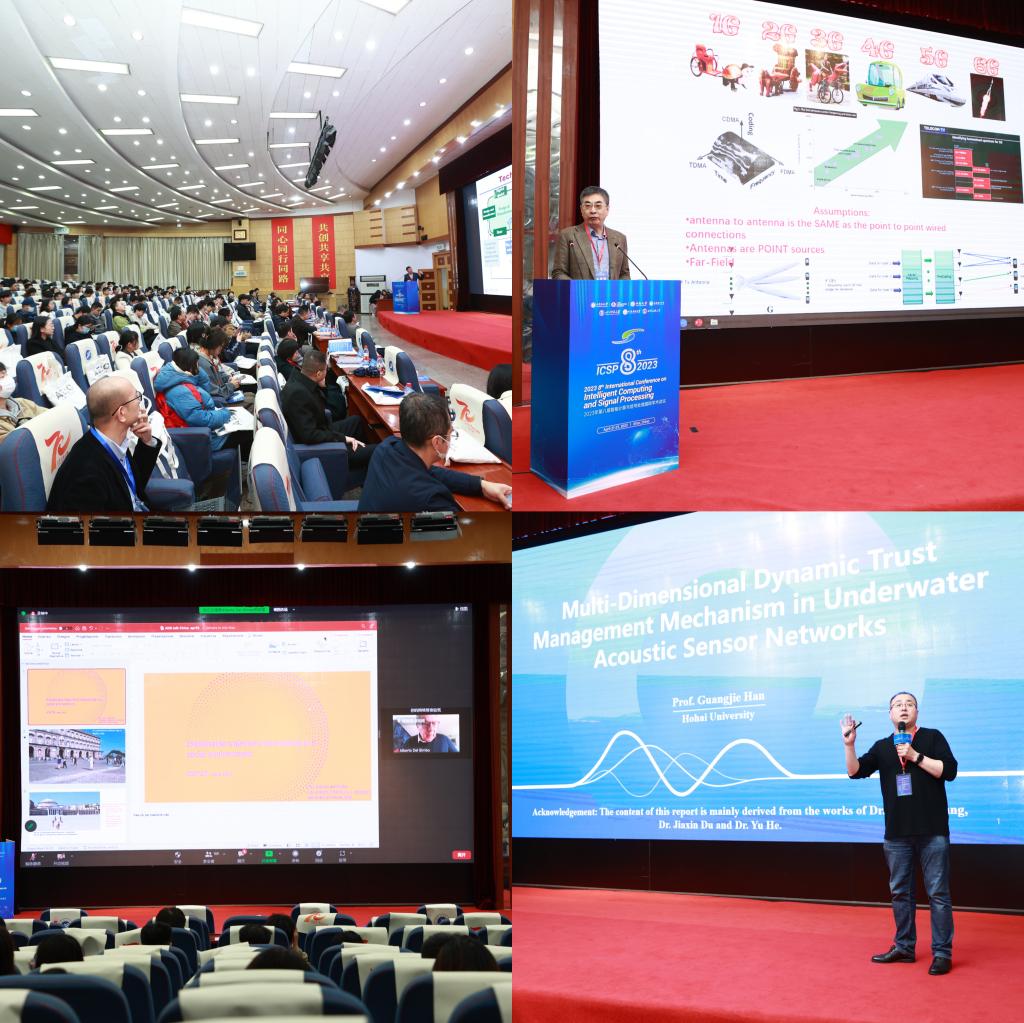 本次國際會議共舉辦8個大會報告、8個邀請報告、500余個口頭報告和海報報告。大會主講環(huán)節(jié)由我校計算機(jī)學(xué)院程國建教授主持,特邀IEEE Fellow、美國機(jī)械工程師協(xié)會會士ASME Fellow、西安交通大學(xué)嚴(yán)如強(qiáng)教授,IEEE Fellow、之江實驗室馬建國教授,IEEE Fellow、悉尼大學(xué)李永會教授,IEEE Fellow、河海大學(xué)韓光潔教授,國家特聘專家、電子科技大學(xué)袁曉軍教授,香港大學(xué)電氣電子工程系胡奕聰副教授,ACM杰出科學(xué)家、ACM SIGMM主席、IAPR研究員IEEE高級會員、佛羅倫薩大學(xué)Alberto Del Bimbo教授,IET Fellow、IETE Fellow、IACSIT Fellow、挪威諾羅夫大學(xué)Seifedine Kadry教授等知名專家學(xué)者,圍繞學(xué)科前沿話題做精彩學(xué)術(shù)報告,現(xiàn)場專家學(xué)者積極參與,交流氛圍熱烈。