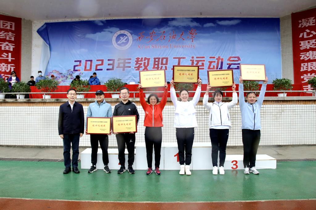 人文學(xué)院工會(huì)代表隊(duì)、機(jī)關(guān)七工會(huì)代表隊(duì)、石油工程學(xué)院工會(huì)代表隊(duì)、機(jī)關(guān)一工會(huì)代表隊(duì)、電子工程學(xué)院工會(huì)代表隊(duì)、機(jī)關(guān)八工會(huì)代表隊(duì)榮獲運(yùn)動(dòng)會(huì)“精神文明先進(jìn)集體”稱號(hào),雷西合為獲獎(jiǎng)單位頒獎(jiǎng)。