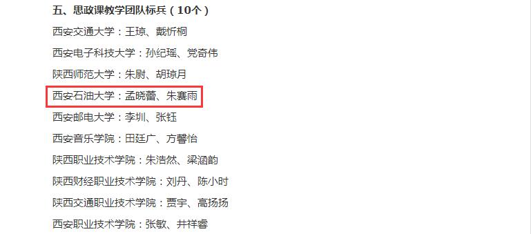 2022年度陜西高校思政課教師“大練兵”省級現(xiàn)場展示獲獎名單于4月13日公布,我校馬克思主義學(xué)院教師李海霞獲得思政課程教學(xué)標(biāo)兵稱號,孟曉蕾、朱賽雨獲得思政課教學(xué)團(tuán)隊標(biāo)兵稱號,高黎、王恩、文愛國、張晰獲得思政課程教學(xué)能手稱號。