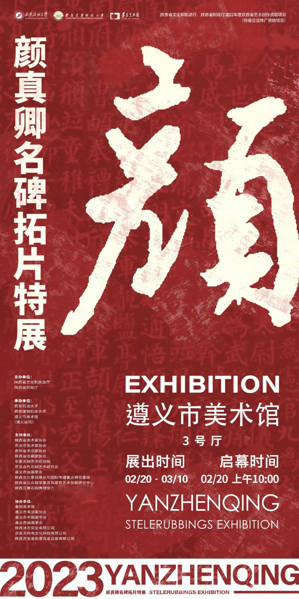 2月20日上午,由陜西省文化和旅游廳、陜西省財(cái)政廳主辦,西安石油大學(xué)、遵義市美術(shù)館(遵義畫(huà)院)聯(lián)合承辦的“書(shū)以載道 文以鑄魂——顏真卿名碑拓片特展”在遵義市美術(shù)館(遵義畫(huà)院)開(kāi)幕。