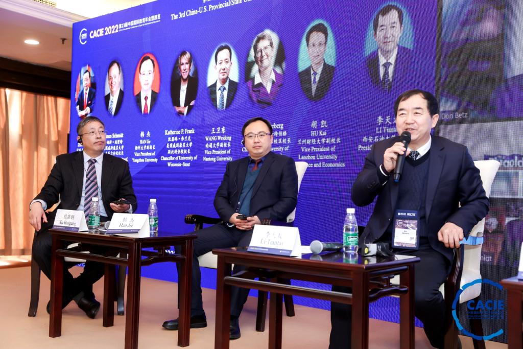 作為本屆年會(huì)的重要組成部分,第三屆中美省州大學(xué)校長(zhǎng)論壇以線上+線下形式舉行,來(lái)自170多所中美高校的代表出席,邀請(qǐng)中美12所高校的校長(zhǎng)作為發(fā)言和研討嘉賓。我校校長(zhǎng)李天太是陜西高校唯一特邀論壇嘉賓。論壇主題為探索中美省州大學(xué)產(chǎn)教融合新模式,提高國(guó)際化人才培養(yǎng)質(zhì)量,服務(wù)地方經(jīng)濟(jì)社會(huì)新發(fā)展。論壇研討內(nèi)容包括以中美學(xué)分互認(rèn)、學(xué)位聯(lián)授項(xiàng)目為基礎(chǔ),以國(guó)際化人才培養(yǎng)為紐帶,構(gòu)建高水平、寬領(lǐng)域、可持續(xù)的中美省州高校合作交流平臺(tái)。通過(guò)教育國(guó)際交流打造適應(yīng)國(guó)家發(fā)展需求的新工科、新農(nóng)科、新商科等高質(zhì)量專業(yè)學(xué)科群,建設(shè)具有國(guó)際化水平的師資隊(duì)伍,加強(qiáng)中美高校之間學(xué)術(shù)科研合作,通過(guò)產(chǎn)教融合模式強(qiáng)化合作共贏理念,推進(jìn)中美省州高校教育交流、人才培養(yǎng)、校企合作、科研合作、人文交流等,為地方經(jīng)濟(jì)社會(huì)發(fā)展服務(wù)。