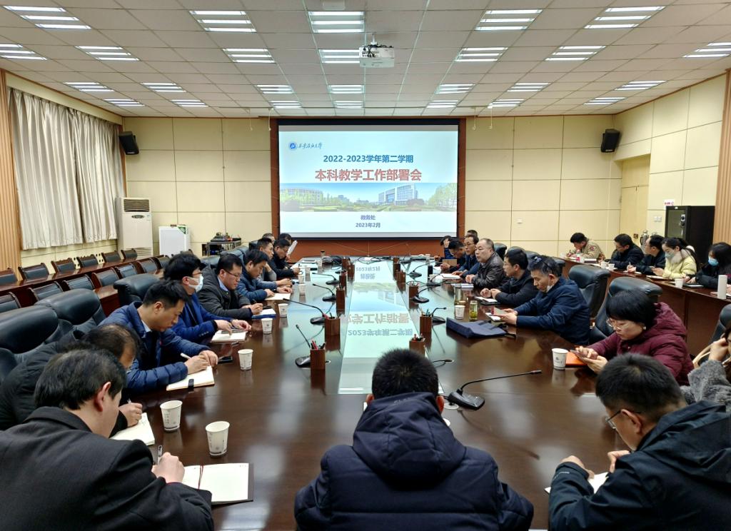 陳軍斌指出,各教學(xué)單位要按照學(xué)校春季開學(xué)工作的總體要求,扎實(shí)做好新學(xué)期各項教學(xué)準(zhǔn)備工作,進(jìn)一步細(xì)化春季學(xué)期本科教學(xué)工作任務(wù),確保各項工作平穩(wěn)有序進(jìn)行。他強(qiáng)調(diào),一是各院(系)要高度重視上學(xué)期課程考核工作,結(jié)合學(xué)生上學(xué)期學(xué)習(xí)實(shí)際,精心組織開展線下串講和輔導(dǎo)答疑,合理安排公共課程和專業(yè)課程考試,同時加快進(jìn)度補(bǔ)足補(bǔ)齊實(shí)驗(yàn)實(shí)習(xí)等實(shí)踐教學(xué)環(huán)節(jié),確保各項教學(xué)工作高質(zhì)量完成。二是加強(qiáng)招生宣傳與錄取工作,招生工作是立德樹人的起點(diǎn),優(yōu)質(zhì)生源是人才培養(yǎng)質(zhì)量的基礎(chǔ),要不斷創(chuàng)新工作思路,豐富宣傳方式,強(qiáng)化生源基地建設(shè),總結(jié)凝練專業(yè)特色與人才培養(yǎng)成效,增強(qiáng)學(xué)校影響力,提升宣傳實(shí)效,貫徹招生宣傳永遠(yuǎn)在路上的理念。三是深化教育教學(xué)改革,聚焦本科教學(xué)核心指標(biāo),督導(dǎo)檢查教改項目落實(shí)進(jìn)度,強(qiáng)化一流專業(yè)建設(shè),以課程建設(shè)為突破口,積極籌備一流課程申報,全面推進(jìn)課程思政建設(shè),打造優(yōu)秀課程教學(xué)團(tuán)隊,加強(qiáng)一流教材申報與建設(shè),提前謀劃精準(zhǔn)施策,統(tǒng)籌做好申報各環(huán)節(jié)工作,持續(xù)推進(jìn)工程教育專業(yè)認(rèn)證工作,加強(qiáng)實(shí)驗(yàn)教學(xué)平臺建設(shè),著力培育高水平教學(xué)成果,推動本科教育高質(zhì)量發(fā)展。四是圍繞新一輪本科教育教學(xué)審核評估指標(biāo)體系,制定學(xué)校工作體系和實(shí)施方案,扎實(shí)做好基礎(chǔ)數(shù)據(jù)統(tǒng)計工作,對標(biāo)對本籌備自評報告,提出問題清單,組織學(xué)習(xí)審核評估指標(biāo)體系,查缺補(bǔ)漏著手準(zhǔn)備基層教學(xué)資料歸檔工作。五是以審核評估指標(biāo)體系為依據(jù),做好教學(xué)經(jīng)費(fèi)預(yù)算,全力保障實(shí)驗(yàn)室建設(shè)、教學(xué)日常運(yùn)行及教學(xué)資源條件,同時保證經(jīng)費(fèi)投入的合理性、使用的有效性以及管理的規(guī)范性。六是扎實(shí)推進(jìn)師德教風(fēng)建設(shè),牢固樹立教師師德底線意識,嚴(yán)肅教風(fēng)教紀(jì),愛業(yè)愛生,身體力行,爭做“德高為師,身正為范”以及“四有”好老師。七是各級教學(xué)管理人員要嚴(yán)于律己,加強(qiáng)學(xué)習(xí),以身作則,提高教學(xué)管理水平,增強(qiáng)統(tǒng)籌協(xié)調(diào)、系統(tǒng)謀劃能力,做到“勤思考、勤動手、勤動嘴、勤動腿”,深入課堂一線,深入基層教學(xué)組織,善于在細(xì)微處發(fā)現(xiàn)問題解決問題,以高效的教學(xué)管理促進(jìn)教學(xué)質(zhì)量有力提升。
