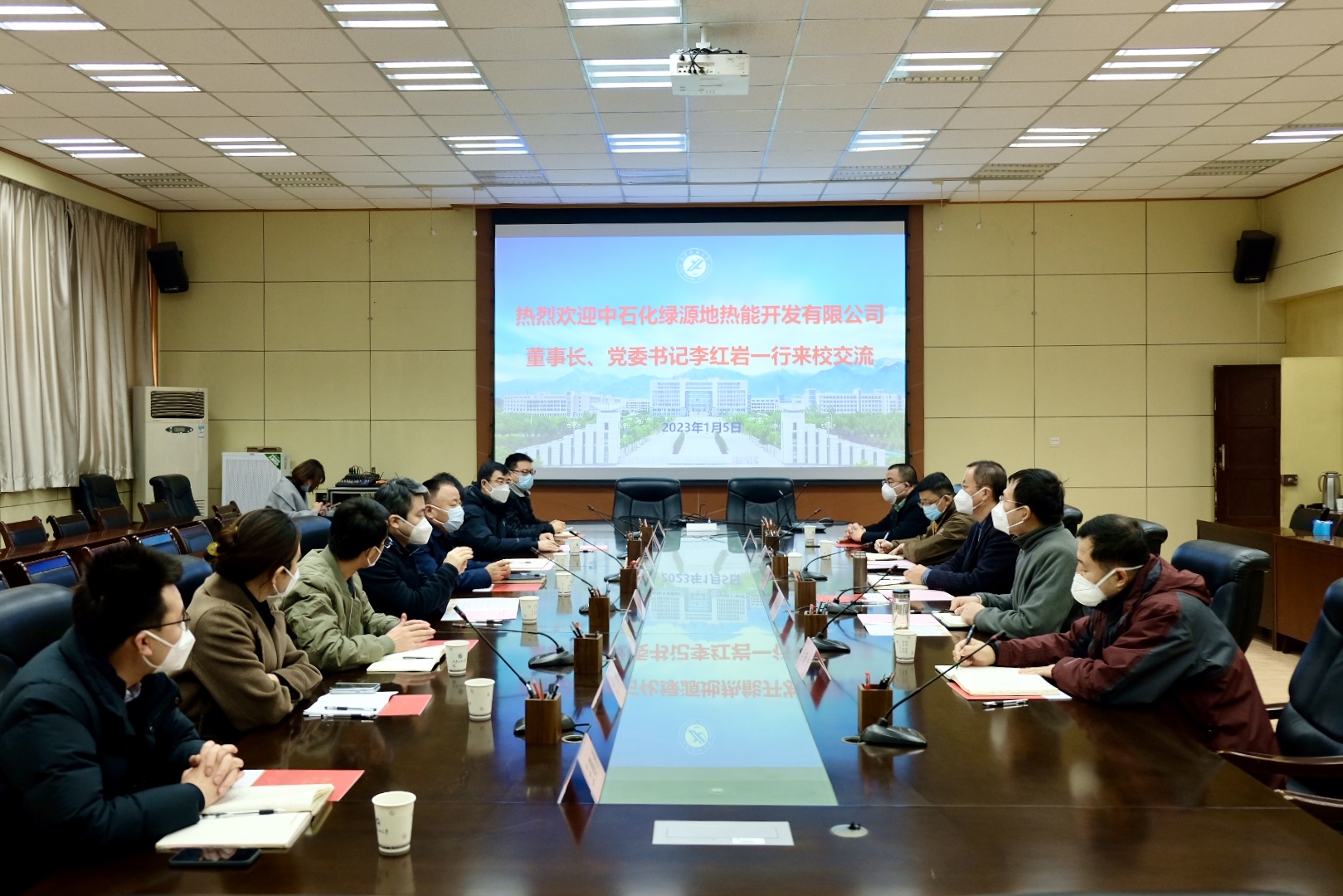 中石化綠源地?zé)崮荛_(kāi)發(fā)有限公司董事長(zhǎng)、黨委書(shū)記李紅巖一行來(lái)校交流訪問(wèn)