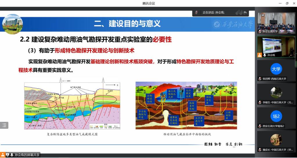 12月4日,受教育部科技與信息化司委托,陜西省教育廳組織9名專家對(duì)我校“復(fù)雜難動(dòng)用油氣勘探開發(fā)”教育部重點(diǎn)實(shí)驗(yàn)室的建設(shè)計(jì)劃進(jìn)行了可行性論證,會(huì)議采取“線上+線下”相結(jié)合的形式召開。省教育廳副廳長高嶺、科技處處長朱曉冬;我校黨委書記賽云秀,實(shí)驗(yàn)室主任、校長李天太,副校長李華、程永清、張榮軍,總會(huì)計(jì)師樊曉民,實(shí)驗(yàn)室學(xué)術(shù)帶頭人、學(xué)術(shù)骨干以及學(xué)校相關(guān)單位負(fù)責(zé)人參加了會(huì)議。會(huì)議由朱曉冬主持。