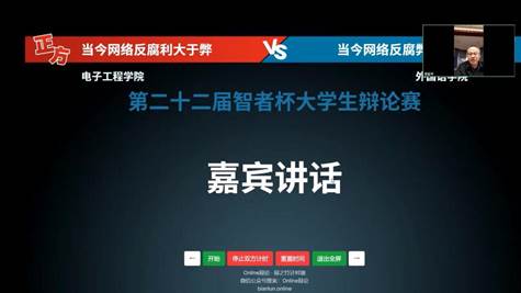 電子工程學院和外國語學院兩支代表隊以“網(wǎng)絡反腐,利大于弊”還是“網(wǎng)絡反腐,弊大于利”進行了緊張而激烈的辯論。辯論雙方理論清晰、旁征博引、思辯敏捷、邏輯嚴密、你來我往、精彩紛呈,為我們呈現(xiàn)了一場高水平的辯論賽。最終,電子工程學院獲得第二十二屆“智者杯”大學生辯論賽冠軍,外國語學院獲得亞軍。馬克思主義學院教師朱銀全代表評委團對本場決賽作了點評。