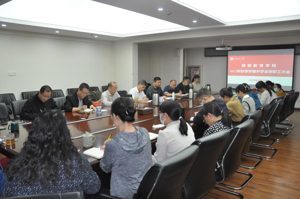 8月29日下午,繼續(xù)教育學(xué)院召開(kāi)新學(xué)期職工大會(huì),總結(jié)暑期工作,部署新學(xué)期工作。副校長(zhǎng)楊戰(zhàn)社出席會(huì)議,繼續(xù)教育學(xué)院黨總支書(shū)記耿嶺主持會(huì)議。