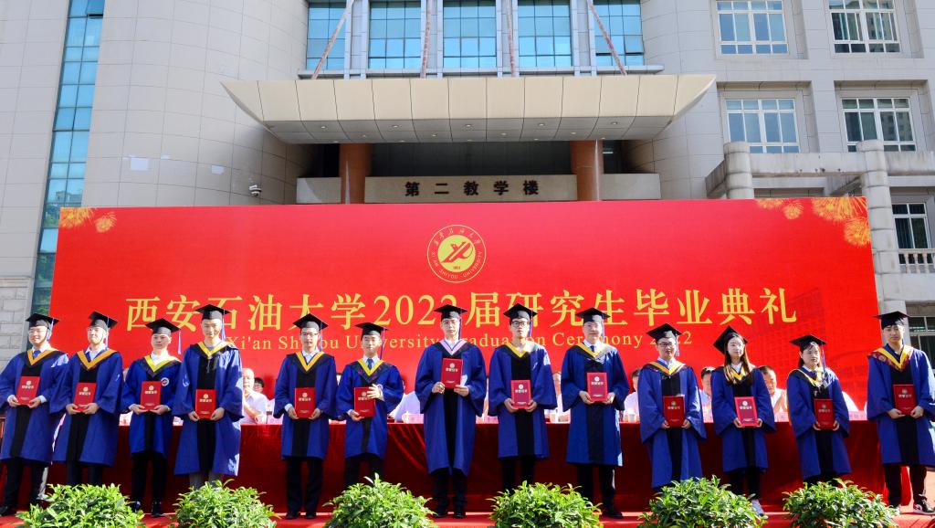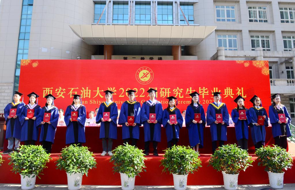 副校長陳軍斌宣讀了《西安石油大學關(guān)于授予孫恒濱等1133名研究生碩士學位的決定》,校黨委副書記張木宣讀了《西安石油大學關(guān)于表彰2022屆優(yōu)秀研究生的決定》,副校長楊戰(zhàn)社宣讀了《西安石油大學關(guān)于表彰2022年優(yōu)秀碩士學位論文作者及指導教師的決定》,校黨委副書記雷西合宣讀了《西安石油大學校友總會關(guān)于聘任2022屆年級校友理事的決定》。與會校領(lǐng)導為研究生優(yōu)秀畢業(yè)生代表、優(yōu)秀碩士學位論文作者頒發(fā)了榮譽證書,為年級理事代表頒發(fā)了聘任證書。