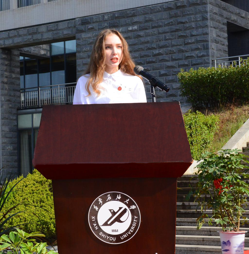 人文學院中文1801班劉渝琳同學、來自俄羅斯的經(jīng)濟管理學院國貿1801班安琳娜同學分別代表畢業(yè)生和留學生發(fā)言。