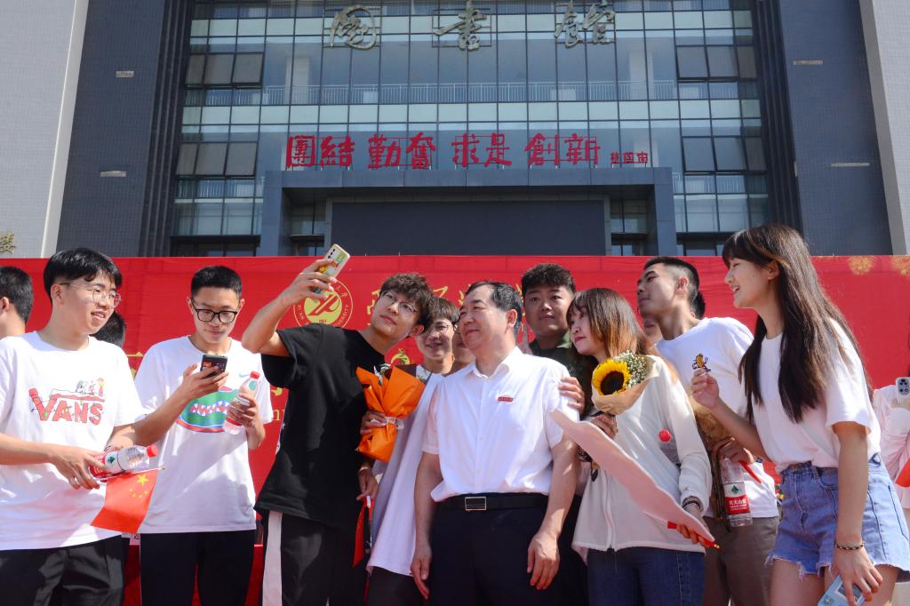 校黨委書記賽云秀和校長李天太代表學校接受2022屆本科畢業(yè)生“寸心基金”捐款4282元。
