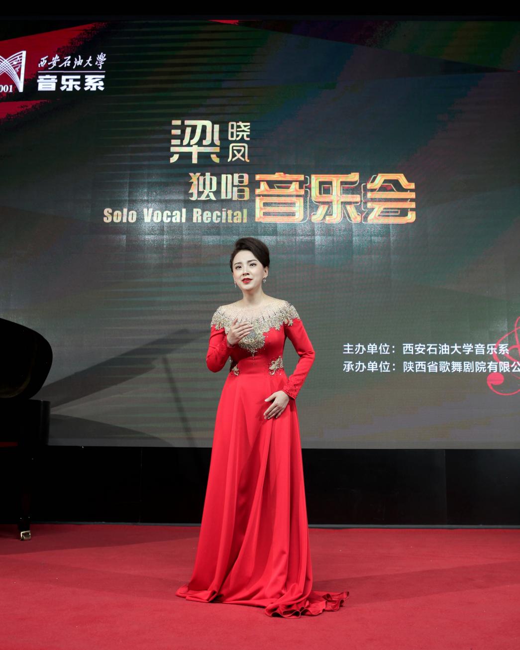 本場音樂會由我校音樂系主辦,陜西省歌舞劇院歌劇團承辦。我校副校長陳軍斌、程永清,總會計師樊曉民,科技處、期刊中心、馬克思主義學院、音樂系的主要負責人,陜西省歌舞劇院歌劇團黨支部書記薛承斌、藝術指導雷萍、郭濤、康苗苗,以及梁曉鳳的聲樂導師陳俊鳳副教授等人,現(xiàn)場觀看了音樂會。音樂會按照學校疫情防控要求,同時在抖音媒體平臺進行了線上實況直播。音樂系部分教師、學生出席了本場音樂會。