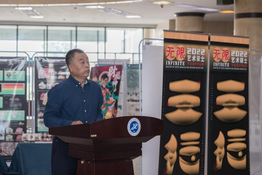 人文學(xué)院藝術(shù)碩士研究生導(dǎo)師肖雪鋒教授代表研究生導(dǎo)師發(fā)言。她說,同學(xué)們用藝術(shù)設(shè)計的表現(xiàn)手法詮釋著對美的理解和當(dāng)下社會問題的關(guān)注,參展的每件作品都承載著同學(xué)們的理想和希望,每件作品背后都凝聚著各位導(dǎo)師和同學(xué)們的辛勤汗水、不懈努力與執(zhí)著追求,希望各位同學(xué)前程似錦,努力開啟屬于自己的美好明天。
