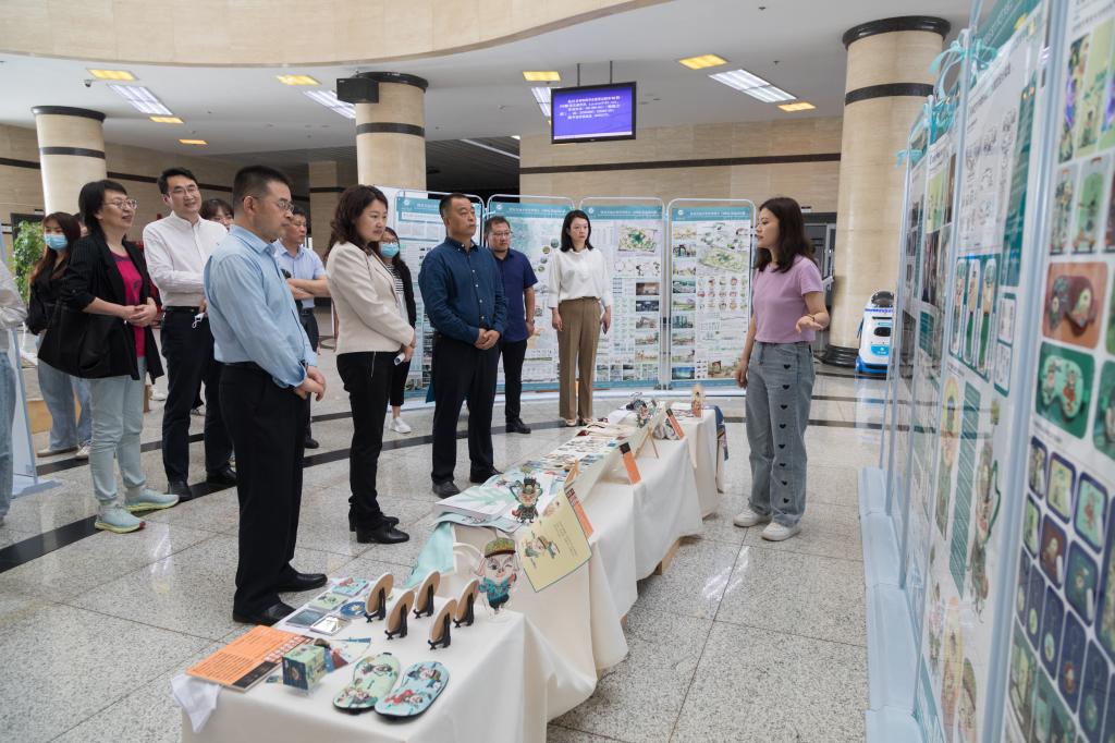 同學(xué)們在各自展位前向與會領(lǐng)導(dǎo)詳細(xì)介紹了自己的創(chuàng)作理念和研究方法,從設(shè)計角度探索開展能源礦區(qū)景觀活化再生設(shè)計、非物質(zhì)文化遺產(chǎn)保護(hù)與傳承、民俗民藝拓展應(yīng)用等實踐研究工作,得到了大家的肯定和贊揚。