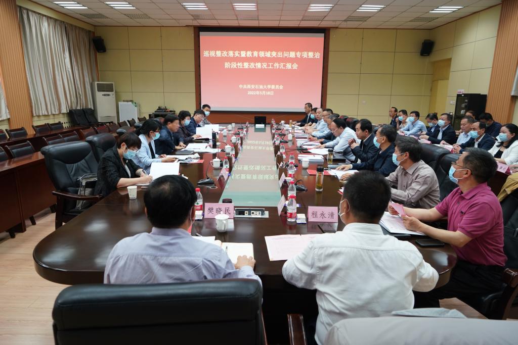 根據(jù)陜西教育領(lǐng)域突出問題專項整治工作領(lǐng)導(dǎo)小組的統(tǒng)一部署,5月18日上午,省教育領(lǐng)域突出問題專項整治工作第一督導(dǎo)組來校開展巡視整改落實暨教育領(lǐng)域突出問題專項整治工作督導(dǎo)檢查。學(xué)校在雁塔校區(qū)會議中心第一會議室召開了巡視整改落實暨教育領(lǐng)域突出問題專項整治階段性整改情況工作匯報會。會議由校黨委書記、學(xué)校巡視整改落實暨教育領(lǐng)域突出問題專項整治工作領(lǐng)導(dǎo)小組組長賽云秀主持。陜西教育領(lǐng)域突出問題專項整治第一督導(dǎo)組組長崔景文一行6人,學(xué)校巡視整改落實暨教育領(lǐng)域?qū)m椪喂ぷ黝I(lǐng)導(dǎo)小組全體成員出席會議。