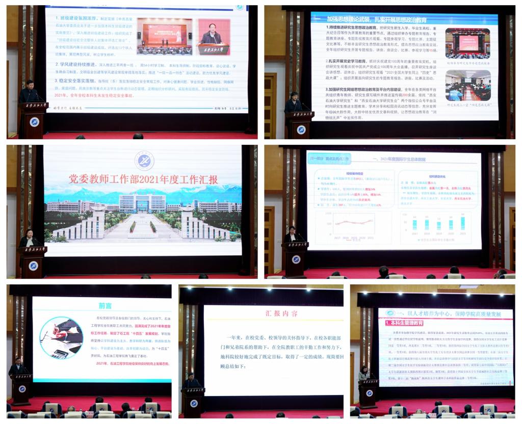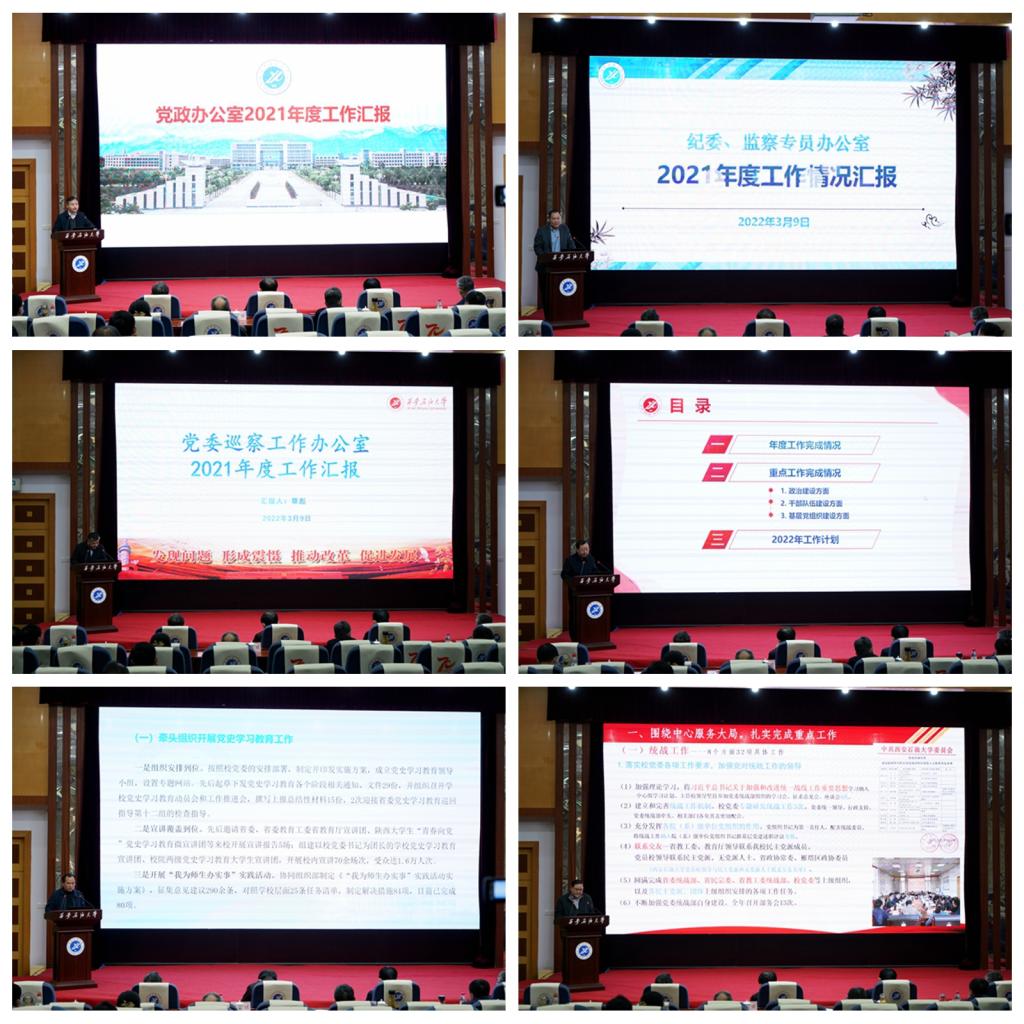 會上,全校各機(jī)關(guān)教輔單位主要負(fù)責(zé)人結(jié)合部門崗位職責(zé)和年度工作要點(diǎn)完成情況進(jìn)行了匯報(bào)。各院(系)主要負(fù)責(zé)人重點(diǎn)圍繞黨的建設(shè)、學(xué)科專業(yè)、教學(xué)科研、學(xué)生工作等方面進(jìn)行了匯報(bào)。匯報(bào)過程中,各單位對照主要工作指標(biāo),匯報(bào)了近三年工作增量情況,同時(shí),對工作中存在的問題和不足進(jìn)行了分析,并明確提出了2022年的工作思路和努力方向。各單位述職述廉匯報(bào)準(zhǔn)備充分,內(nèi)容詳實(shí),重點(diǎn)突出,充分展示了各單位在2021年取得的成績。