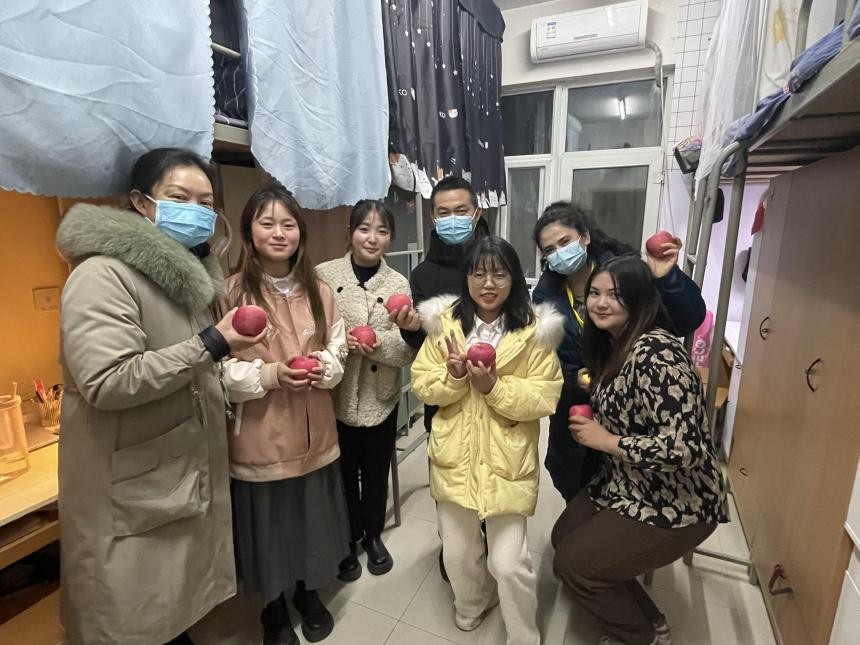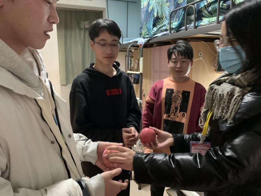 元旦期間,學(xué)校為全體學(xué)生免費(fèi)發(fā)放暖心雞蛋一枚,共發(fā)2萬余枚;為每個(gè)宿舍發(fā)放一份“套餐”,共計(jì)5千余份。