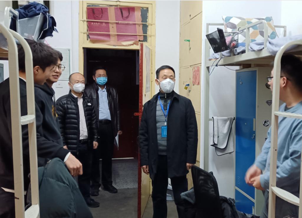 12月31日晚,學(xué)校黨政領(lǐng)導(dǎo)賽云秀、李天太、張木、雷西合、陳軍斌、蘇文甫、程永清、張榮軍、樊曉民深入雁塔校區(qū)、鄠邑校區(qū)、明德校區(qū)學(xué)生宿舍,給因疫情防控要求不能“出門”的學(xué)子帶來深情的祝福。校領(lǐng)導(dǎo)與學(xué)生熱情交談,仔細(xì)了解學(xué)生疫情期間的思想、學(xué)習(xí)、生活情況,耐心解答學(xué)生提出的問題,并希望學(xué)生們自覺增強(qiáng)自身防控意識(shí),嚴(yán)格遵守疫情期間學(xué)校的各項(xiàng)安排和規(guī)定,“以靜制動(dòng)”,將精力集中到自我防護(hù)、學(xué)習(xí)知識(shí)和提升素質(zhì)上來,不恐慌、不添亂,不辱疫情防控的青年使命,不負(fù)強(qiáng)國報(bào)國的青年擔(dān)當(dāng),以實(shí)際行動(dòng)應(yīng)對(duì)戰(zhàn)“疫”挑戰(zhàn),發(fā)揮青春力量。