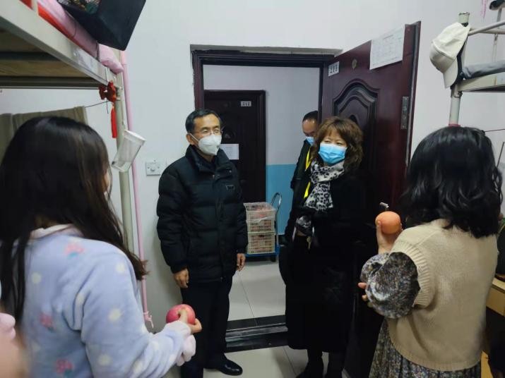疫情無情人有情。在歲末年初之際,學(xué)校領(lǐng)導(dǎo)親自部署、親臨現(xiàn)場,各部門、各院系積極行動(dòng),深入學(xué)生宿舍、學(xué)生志愿者崗位等疫情防控一線,把組織的溫暖送給每一位西石大學(xué)子。
