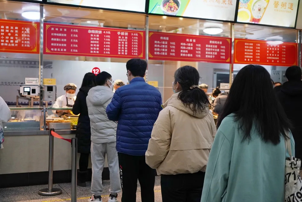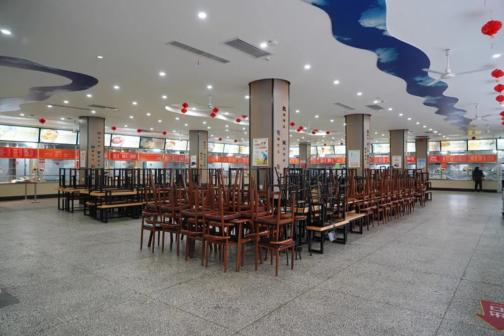 科學(xué)制定、動態(tài)調(diào)整就餐方案,除集中保潔消殺時段,兩校區(qū)校園餐廳加強(qiáng)供應(yīng),每餐每個宿舍指派一人前來取餐,禁止堂食。