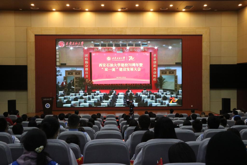 黨委書記賽云秀在主持大會(huì)時(shí)指出,70年艱苦創(chuàng)業(yè),上下求索,書寫著西安石油大學(xué)春華秋實(shí)的華美篇章。70年歷久彌堅(jiān),昂揚(yáng)奮進(jìn),承載著西安石油大學(xué)奔向一流的光榮夢(mèng)想。今天的大會(huì)是西安石油大學(xué)發(fā)展史上承前啟后、繼往開來的大會(huì)。各位領(lǐng)導(dǎo)、來賓、校友和社會(huì)各界朋友對(duì)學(xué)校事業(yè)發(fā)展寄予了殷切的希望和良好的祝愿,增強(qiáng)了學(xué)校的發(fā)展信心和動(dòng)力,令全校師生深受鼓舞,倍感振奮。我們將以建校70周年為新的起點(diǎn),認(rèn)真貫徹落實(shí)習(xí)近平總書記關(guān)于高等教育的重要論述和講話精神,堅(jiān)守為黨育人、為國育才的初心使命,堅(jiān)持立德樹人根本任務(wù),立足新時(shí)代,貫徹新理念,構(gòu)建新格局,進(jìn)一步優(yōu)化學(xué)科專業(yè)布局,加強(qiáng)師資隊(duì)伍建設(shè),創(chuàng)新人才培養(yǎng)模式,加快科技創(chuàng)新,不斷提升辦學(xué)質(zhì)量和整體水平,推動(dòng)學(xué)校高質(zhì)量發(fā)展,為國家能源戰(zhàn)略和石油工業(yè)發(fā)展,為譜寫陜西高質(zhì)量發(fā)展新篇章作出更大的貢獻(xiàn)。