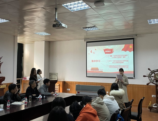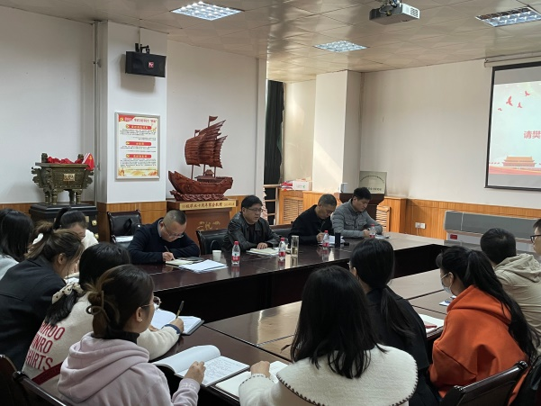11月5日,經濟管理學院研2020級學碩黨支部“做愛國奮斗的新時代青年”專題學習研討會在雁塔校區(qū)東方石油樓1507會議室召開。學??倳嫀煼畷悦褡鳛槁撓?/span>該支部的校領導出席會議參加學習研討,并為與會學生黨員講授專題思政課,經濟管理學院黨委書記王宏衛(wèi)、黨委副書記王剛、學生工作辦公室主任李博文及黨支部全體成員近30人參加會議。