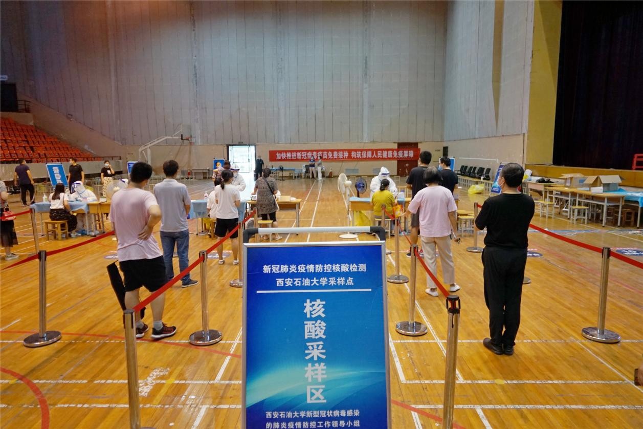 為確保雁塔校區(qū)全員核酸檢測有條不紊的開展,學(xué)校按照分批、錯峰的原則,精確劃分檢測人員的批次、時段、順序,檢測人員在規(guī)定時間內(nèi)分批到雁塔校區(qū)體育館進(jìn)行核酸檢測。