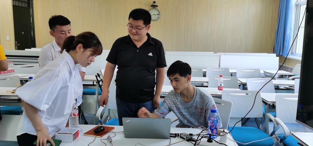 會(huì)后,相關(guān)職能部門緊急部署安排,于1330到達(dá)鄠邑校區(qū)智慧教室搭建比賽平臺(tái)、調(diào)試比賽設(shè)備,項(xiàng)目指導(dǎo)老師一并到達(dá)賽場(chǎng)對(duì)項(xiàng)目進(jìn)行賽前指導(dǎo)。機(jī)械工程學(xué)院黨委副書記、輔導(dǎo)員代表學(xué)院前來(lái)現(xiàn)場(chǎng)為參賽團(tuán)隊(duì)加油鼓勵(lì)并送來(lái)礦泉水等物資。