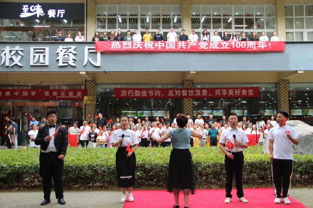 為慶祝中國共產(chǎn)黨成立100周年,響應習近平總書記在黨的十九大報告中提出的新時代堅持文化自信號召,7月1日中午,音樂系組織師生在雁塔校區(qū)學生餐廳舉辦“紅歌快閃”活動,吸引了校園眾多師生觀看,場面熱烈。音樂系已連續(xù)四年組織“紅歌快閃”活動,唱響主旋律,凝聚精氣神,謳歌黨的光輝歷史和豐功偉績,充分展現(xiàn)師生良好的精神風貌。校黨委副書記雷西合,組織部、宣傳部、音樂系、高教研究與評估中心、材料科學與工程學院、馬克思主義學院、經(jīng)濟管理學院、外國語學院等單位負責人,以及100余名音樂系師生參加了本次“紅歌快閃”活動。本次活動由音樂系黨總支策劃,何云老師排練指導。