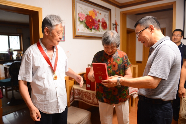 在“慶祝中華人民共和國成立70周年”紀(jì)念章獲得者、離休干部薛紀(jì)元家中,校黨委書記賽云秀為薛紀(jì)元和姚桂榮夫婦佩戴了“光榮在黨50年”紀(jì)念章,仔細(xì)詢問了他們的身體健康狀況和生活情況。他指出,在建黨100周年之際,黨中央決定頒發(fā)“光榮在黨50年”紀(jì)念章,體現(xiàn)了以習(xí)近平同志為核心的黨中央對(duì)老黨員的政治關(guān)懷,體現(xiàn)了黨和人民對(duì)老黨員歷史貢獻(xiàn)的充分肯定,希望他們保持愉悅身心、安享晚年生活,并積極為學(xué)校提出寶貴意見建議,助力學(xué)校改革發(fā)展。隨后,賽書記慰問了“慶祝中華人民共和國成立70周年”紀(jì)念章和“中國人民志愿軍抗美援朝出國作戰(zhàn)70周年”紀(jì)念章獲得者董玉田、李秋華夫婦和困難老黨員陳寶江,并為他們佩戴了“光榮在黨50年”紀(jì)念章。在陳寶江同志家中,賽書記親切詢問其身體狀況、家庭收入、醫(yī)藥費(fèi)報(bào)銷情況以及生活中存在的困難和問題,叮囑相關(guān)部門要多關(guān)心老黨員的生活,幫助他們解決實(shí)際問題。