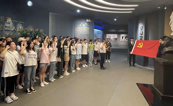 講黨課比賽開始前,學(xué)校組織各院(系)新發(fā)展黨員代表在鐵人王進(jìn)喜紀(jì)念館集中進(jìn)行了入黨宣誓活動(dòng),在黨委組織部常務(wù)副部長(zhǎng)種宇宏老師的帶領(lǐng)下,全體新發(fā)展黨員代表面對(duì)黨旗,高舉右手莊嚴(yán)宣誓,表達(dá)了對(duì)黨的鄭重承諾和為黨的事業(yè)奮斗終生的決心。