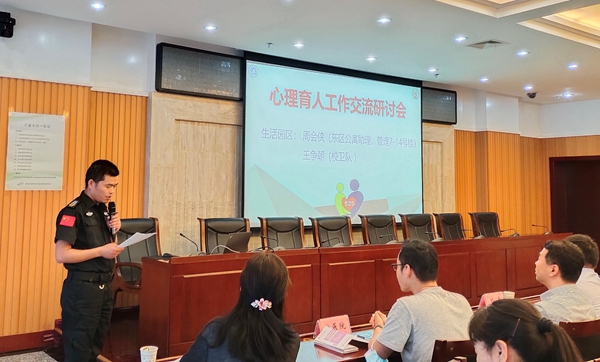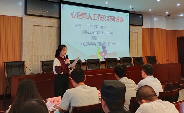 隨后,電子工程學(xué)院心理專干錢宇航老師、化學(xué)化工學(xué)院心理專干陳雨露老師分別介紹了本院心理輔導(dǎo)站的建設(shè)情況、一院一品的心理健康教育特色活動(dòng)、個(gè)人工作的經(jīng)驗(yàn)與體會(huì),并提出了工作中的問題和困惑。機(jī)械工程學(xué)院土木1904班的心理委員艾曼?努爾德別克,地球科學(xué)與工程學(xué)院勘探1902班的心理委員吳怡樂同學(xué)分享了作為心理委員的挑戰(zhàn)、經(jīng)驗(yàn)、收獲和成長(zhǎng)。東區(qū)公寓助理周會(huì)俠同志、鄠邑校區(qū)校衛(wèi)隊(duì)隊(duì)長(zhǎng)王爭(zhēng)朝同志、校醫(yī)院趙利劍醫(yī)生代表學(xué)生生活園區(qū)的管理者和服務(wù)者,從各自工作性質(zhì)和特點(diǎn),介紹了與學(xué)生生活中互動(dòng)的案例和經(jīng)驗(yàn)。學(xué)生代表馬克思主義學(xué)院2019級(jí)研究生李婷,從自我關(guān)懷的角度講述了個(gè)體如何應(yīng)對(duì)壓力,在良好校園心理氛圍的感染下,促進(jìn)心理健康。