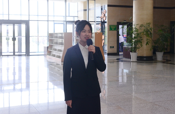 校團委學(xué)生兼職副書記苗雨講述微黨課,并誦讀毛主席詩詞《憶秦娥·婁山關(guān)》