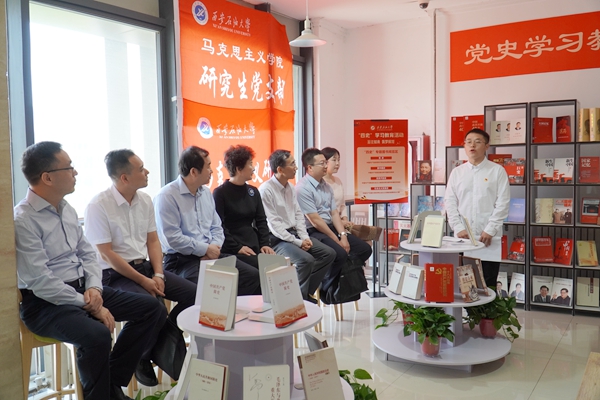 檢查指導(dǎo)過程中,陜西高校首批新時代黨建示范創(chuàng)建和質(zhì)量創(chuàng)優(yōu)工作標桿院系、地球科學(xué)與工程學(xué)院應(yīng)用地球物理系教工黨支部書記趙軍龍,經(jīng)濟管理學(xué)院馬克思主義研習(xí)社分社學(xué)生社團黨支部書記李卓錦就基層師生黨支部黨史學(xué)習(xí)教育開展與指導(dǎo)組作了現(xiàn)場匯報交流。